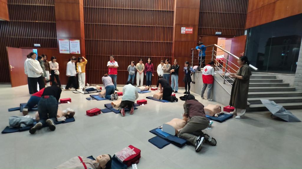 在理论学习环节中,黄飞老师深入讲解了红十字运动的历史与发展、应急救护流程及相关注意事项。培训内容包括心肺复苏的操作要领、自动体外除颤器(AED)的使用规范、创伤止血和包扎等急救要点,为学员们奠定了扎实的急救理论基础。在实操训练中,市红十字会讲师团通过现场示范和指导,将理论与实践有机结合。学员们在AED模拟设备上进行了多次心肺复苏练习,系统练习了环形包扎、螺旋包扎、"8"字包扎、回返包扎以及三角巾悬臂带包扎等多种包扎技能。通过练习,学员们熟练掌握了相关急救知识和操作技能,并顺利通过考核。