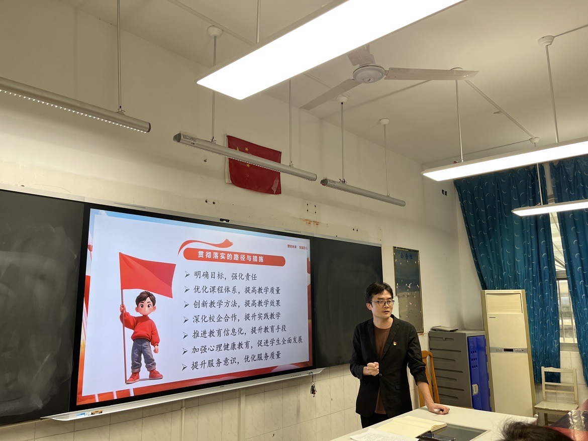 为指引教育改革路径,激发教育创新动力,强化教育服务能力,11月13日,我校第四党支部成功举办了“党的二十届三中全会精神引领下的教育教学实践探究”主题党课活动,本次活动由第四党支部书记孙大兴主讲,支部党员参加。活动内容分为三大板块:学习全会精神,研讨教育体制改革策略和党建引领下的人才培养。