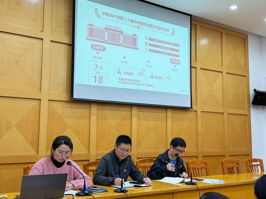 为深入学习贯彻党的二十届三中全会精神,进一步加强党的组织建设,严格把关党员发展质量,根据党组织相关规定,第二党支部于11月14日下午在道德讲堂召开党员大会。会议共分“政治学习”“党的二十届三中全会精神宣讲”“讨论接收中共预备党员”三项议程。第二党支部副书记殷荣荣同志出席会议,支部党员参加,支部组织委员徐磊同志主持。