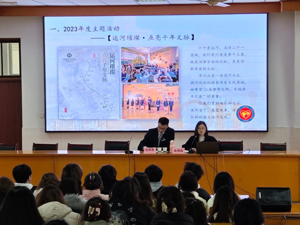 朱明珠总经理向与会者展示了文璞酒店的特色主题活动与文化宣传亮点。2023年,酒店以“运河璀璨・点亮千年文脉”为主题,展现常州大运河文化魅力,促进文化遗产保护与传承。2024年,酒店围绕历史名人苏东坡,打造文化名片,撬动名人效应。2025年,酒店计划以丝绸之路为灵感,打造“一路生花”主题文化活动,持续为宾客带来丰富多彩的文化体验,彰显酒店文化底蕴与时代创新。
