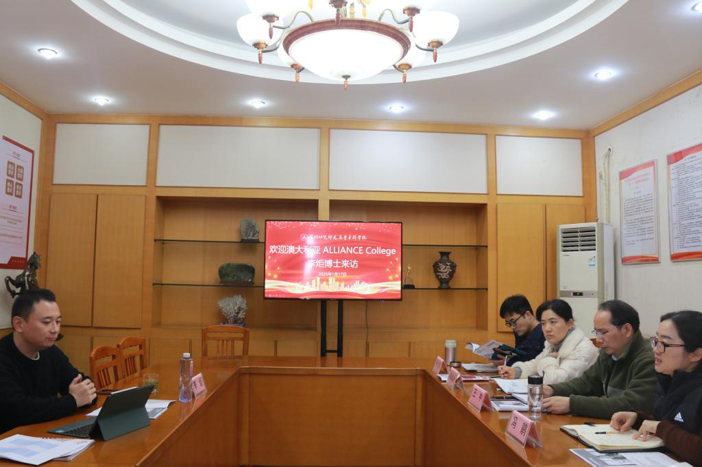 双方相互介绍后,李博士对ALLIANCE COLLEGE学院的项目内容、学院优势以及合作愿景等做了详细阐述。我校部门负责人先后就合作模式、语言要求、专业对接、学制差异、留学费用和签证、学历认证等问题和李博士做深入交流。双方在友好的氛围中,针对合作细节交换意见。经过充分讨论,初步达成了合作意向。后续,两校将组建专项工作小组,推进合作协议的拟定与签署。