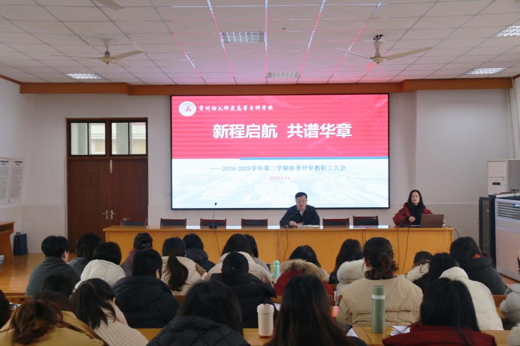 2月14日,我校举行新学期教职工大会,全体校领导和教职工参加会议,会议由校党委副书记、副校长蒋云波主持。