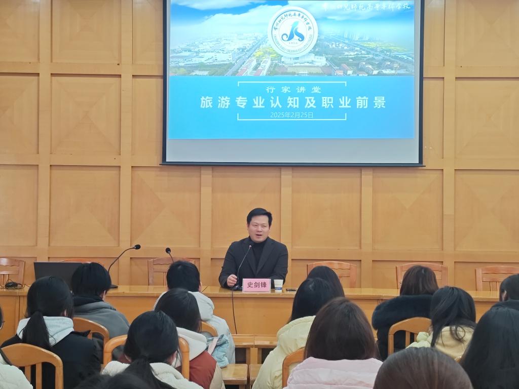 2月25日,我校现代服务专业部成功举办“智通未来:旅游专业认知及职业前景”行家讲堂。全国特级导游、常州旅游商贸高等职业技术学校旅游管理学院院长史剑峰先生受邀为旅管21、24级全体同学深度解读旅游专业发展趋势与常州旅游行业前景。专业部主任吴科岭担任开场主持。