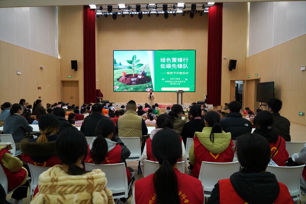 在宣讲环节,志愿者代表李桐向幼儿园孩子们介绍了树木科普、生态保护等内容,生动讲述了植树节的历史由来和重要意义,引导孩子们在日常生活中爱护花草树木。通过趣味互动和交流,小朋友们对植树益处产生了浓厚兴趣,心中悄然播下了“绿色环保”的种子。