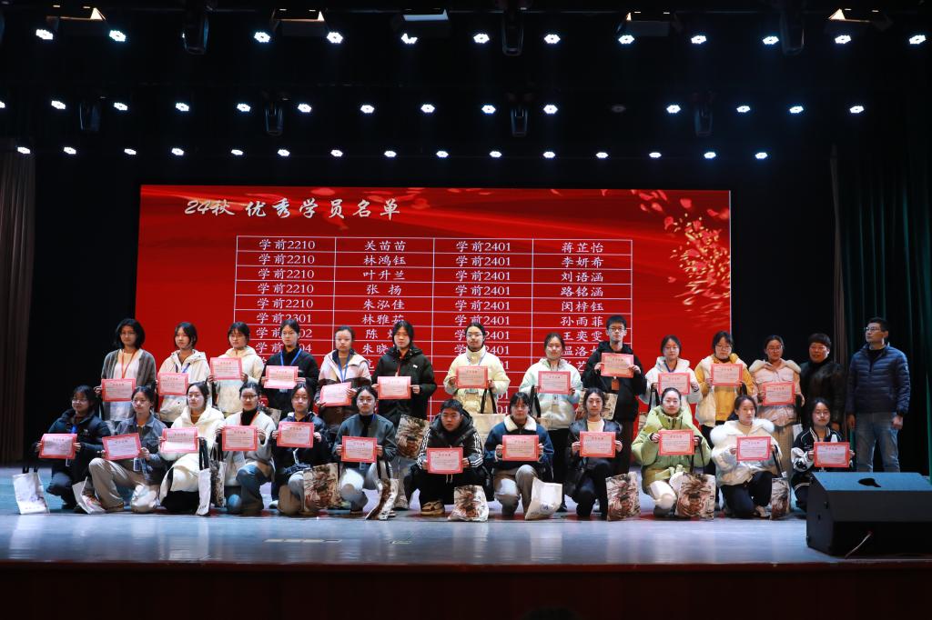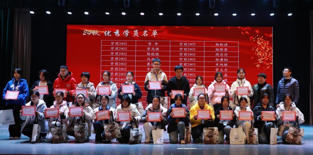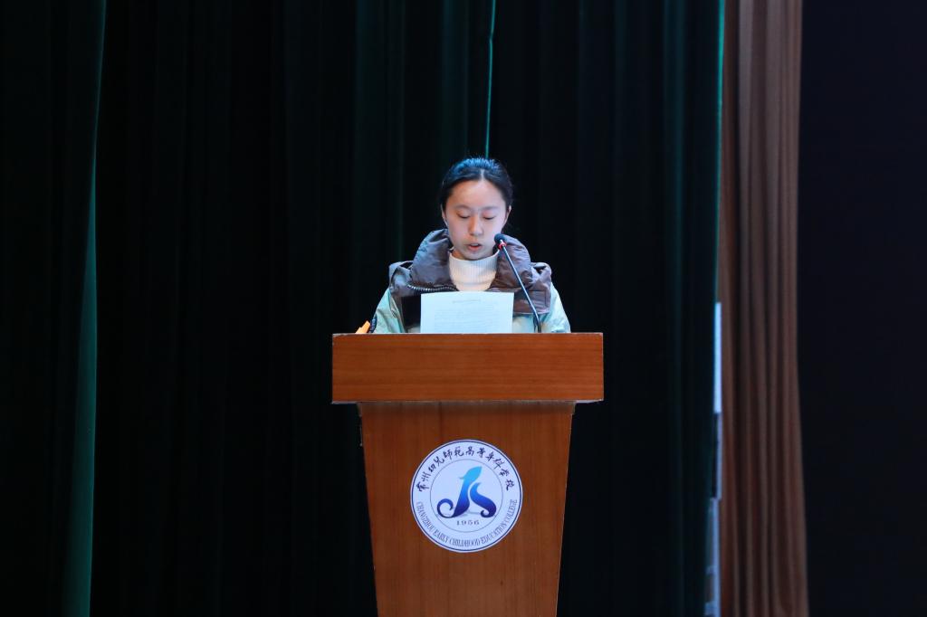 大会伊始,通过一段回顾视频,在场人员一同重温了24年秋学期学员们在综合素养提升课程中的点点滴滴。学前2201班王玮伊同学作为优秀学员代表,展示了在学习中付出的努力和汗水,分享了在课程中的收获的经验与成长。