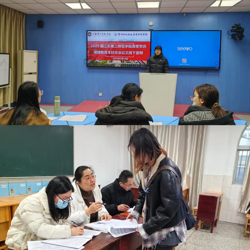 3月16日,我校培训处精心组织了江苏第二师范学院2025届学前教育专业(函授本科)学生的毕业论文答辩活动。此次答辩工作在副校长魏霞和培训处处长刘斌的监督与指导下有序开展,学前教育专业的教师以及函授班班主任参与答辩活动。活动由培训处副处长肖婧主持。