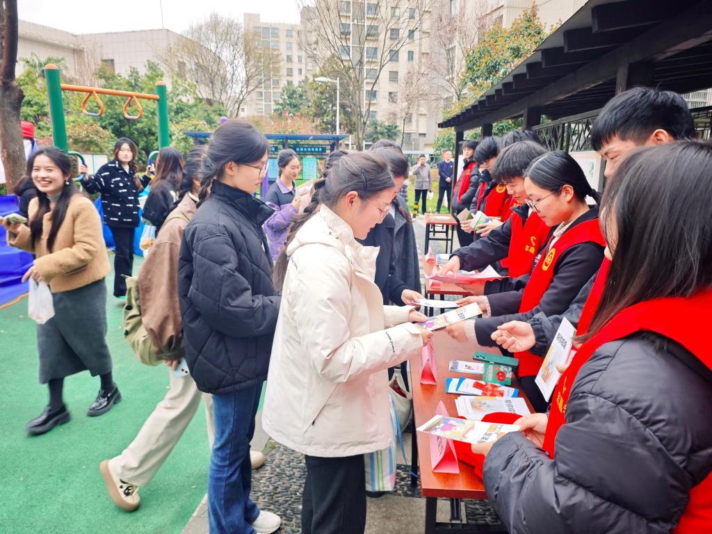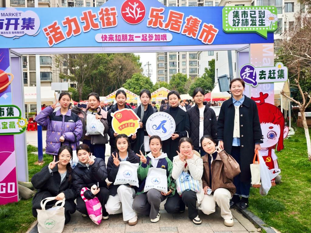 在社区治理一线,我校青年在辅导员董梦寒老师的带领下,深度融入基层服务。在“共植幸福树 共护珊瑚林”护绿行动中,他们协助进行环保宣传,与居民共同张贴护绿宣言;在“阳湖有好市 好市连连传”文明集市中,他们主动承担反诈宣传、垃圾分类宣传等志愿服务任务,并同步参与非遗体验、绿植DIY等文化惠民活动。活动现场,我校志愿者们耐心解答居民疑问,展现了新时代青年服务社会的责任与担当。