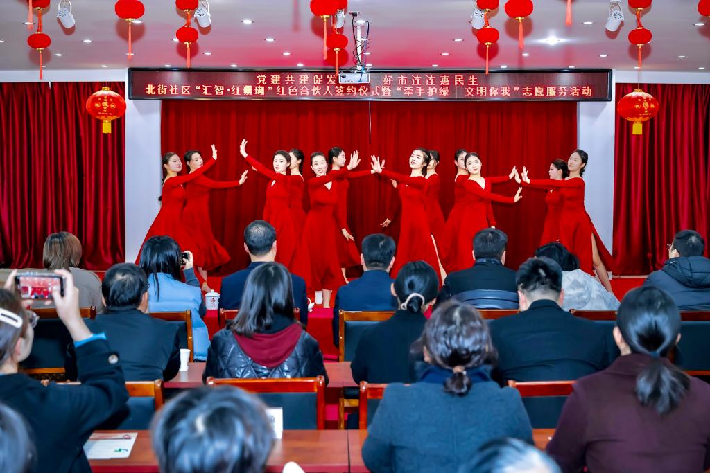 活动筹备期间,团委组建学生志愿团队,舞蹈教研室缪砚老师担任舞蹈编排指导,围绕社区共建理念开展节目创编。师生团队以《世界赠与我的》为蓝本,通过多次走台排练和细节打磨,将专业教学成果融入社区文艺舞台。演出当天,学生们以灵动舞姿展现青春风采,赢得观众阵阵掌声,为校地文化共建贡献了富有感染力的艺术表达。