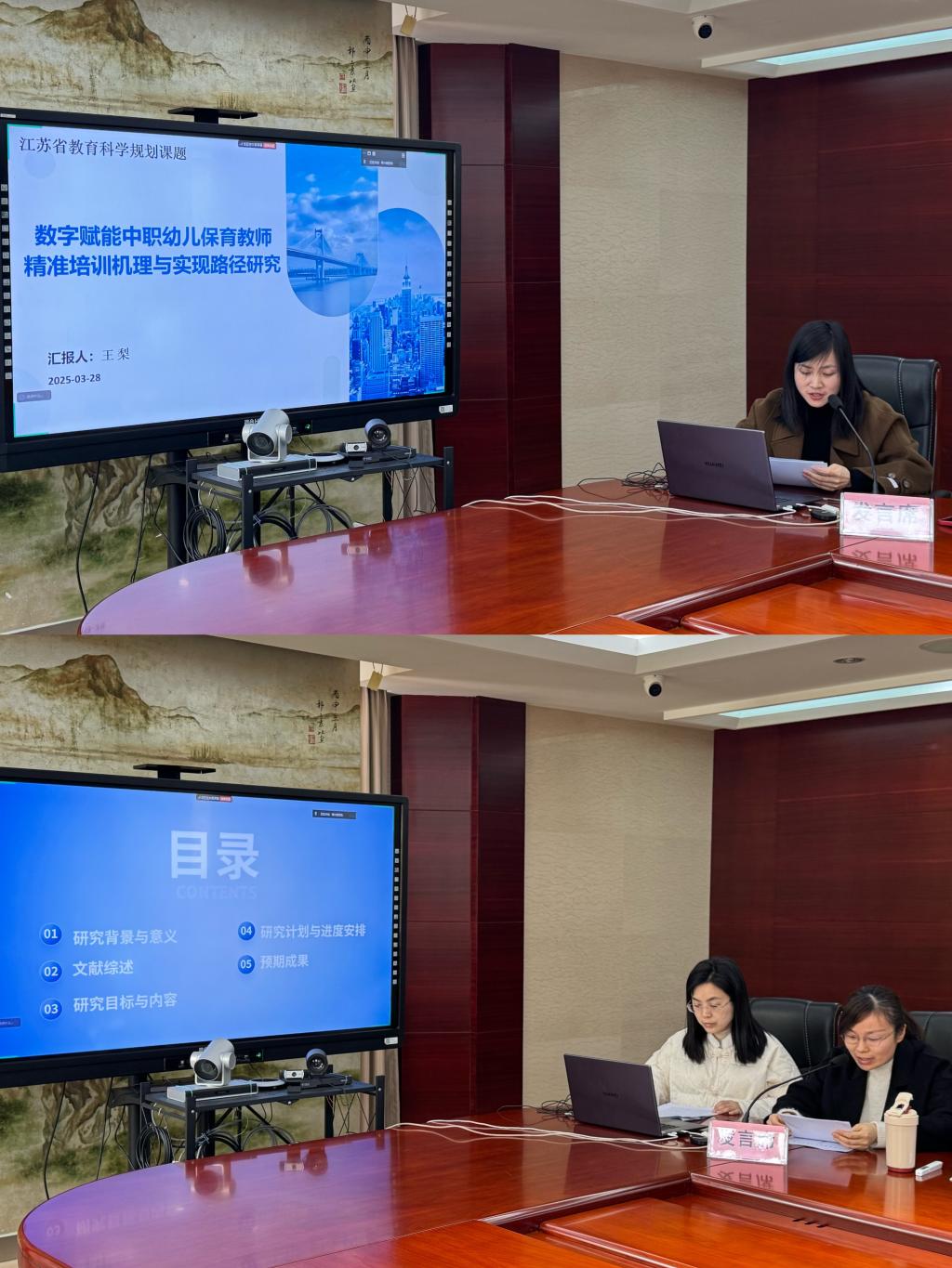 此次开题论证的两项课题分别是王梨、屈玲主持的重点立项课题《数字赋能中职幼儿保育教师精准培训机理与实现路径研究》,以及刘斌、吴月娥主持的青年专项课题《教育家精神引领下高职英语教师课程思政素养培育的研究》。王梨、吴月娥两位主持人从研究背景、核心概念、创新点及实施路径等方面进行了系统阐述。三位专家分别对课题进行了深度剖析,他们充分肯定了课题的实践价值与创新意义,同时就研究目标的细化、理论框架的完善及数据收集方法等方面提出了建设性意见。