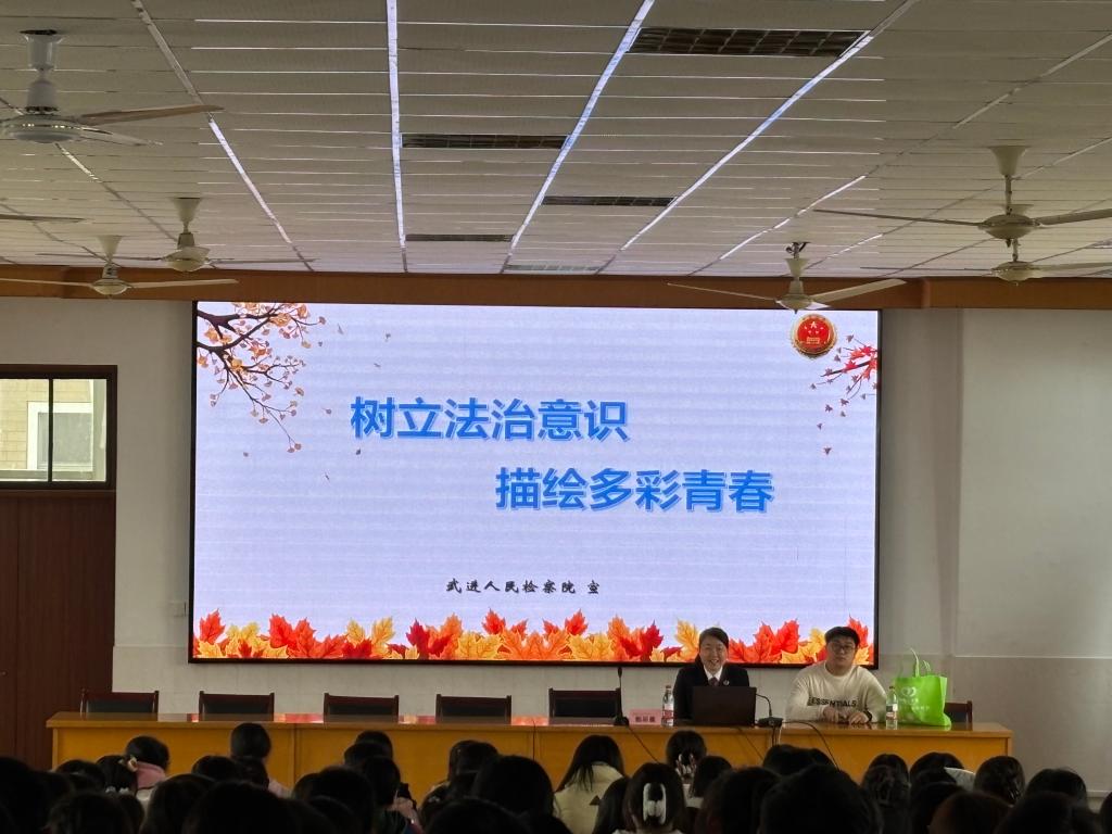 为深入贯彻落实法治教育精神,增强学生法治观念,营造平安和谐的校园环境,3月31日,我校特邀武进区人民检察院未成年人检察部检察官郭辰晨开展《树立法治意识 描绘多彩青春》法治教育专题讲座。五年制24级全体学生,全校班长、团支书、学生代表参加学习。