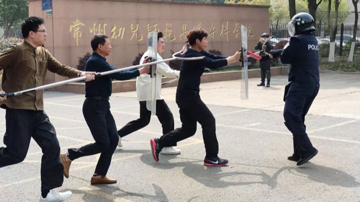 我校组织开展“最小应急单元”演练 2025年04月10日 16:25 点击:[] 为应对突发事件的发生,4月9日,我校邀请区防暴大队队长周鑫,组织开展“最小应急单元”演练。全体保安人员和护学岗老师参加演练。 周鑫队长讲解了空手和持械等情况下应对暴徒的方法,并进行了示范。参训人员专心聆听、认真演练,得到了周队长的肯定。 本次演练增强了相关工作人员的安全意识,提升了我校“最小应急单元”的应急处置能力,是我校安全稳定工作的一项重要举措。 (供稿:后勤管理处 撰稿:刘建国 摄影:刘建国、李庆武 审核:刘建国 发布:孟晨迪) 上一条:沉浸体验 知行合一:我校师范教育专业部学生赴基地幼儿园开展见习实践活动 下一条:清澈的爱,只为祖国——我校开展国防教育主题观影活动 【关闭】