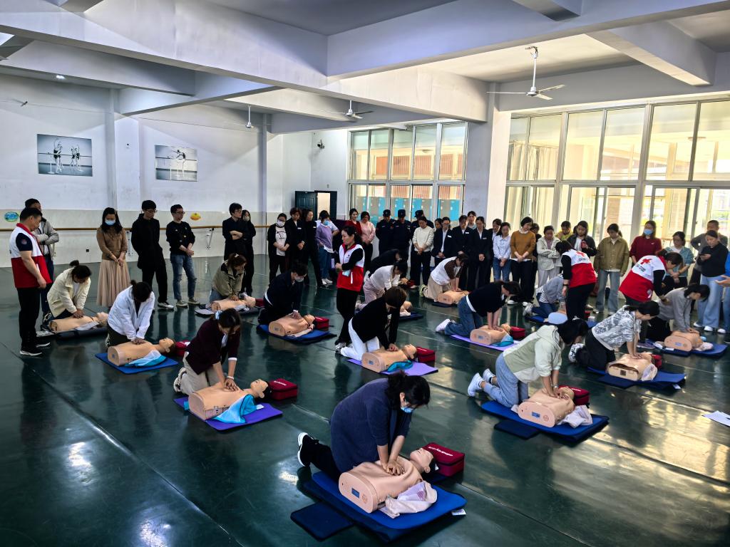 为全面普及应急救护知识,增强教职工突发事件处置能力,4月15日,学校与市红十字会联合举办的教工专场CPR+AED急救培训在演播厅举行,培训重点围绕心肺复苏、自动体外除颤仪(AED)使用以及气道异物梗阻救护流程展开。