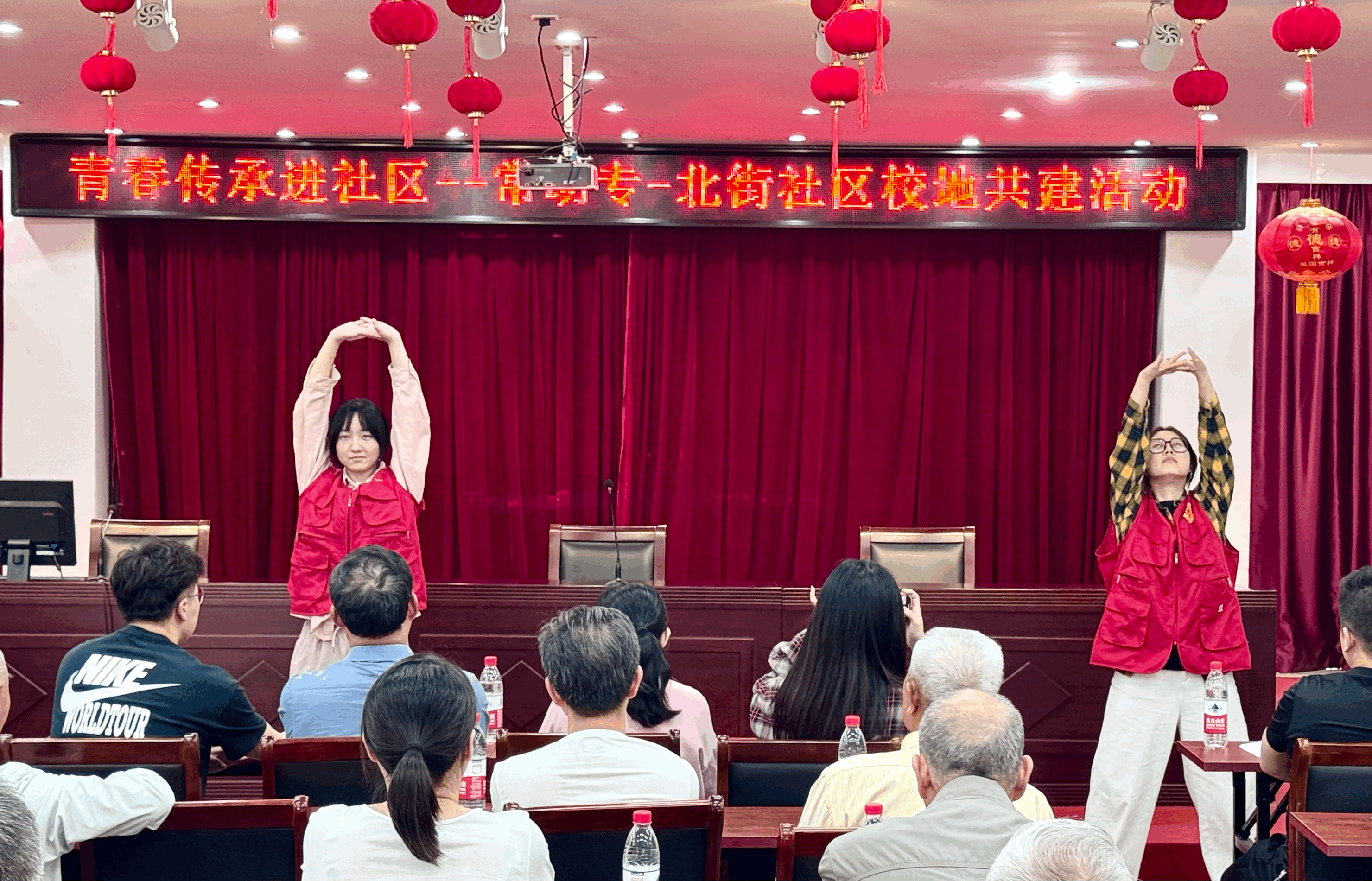 在八段锦健身交流环节,我校党员教师及青年志愿者们,带领北街社区党员代表、社区居民共同体验传统健身项目“八段锦”。他们结合动作要点,细致讲解方法、生动演示动作、悉心纠正姿势、耐心解答问题,帮助老人快速掌握“八段锦”的基本要领。老人们动作日趋规范,广场上井然有序、整齐划一的健身场景成为社区一道亮丽风景线。