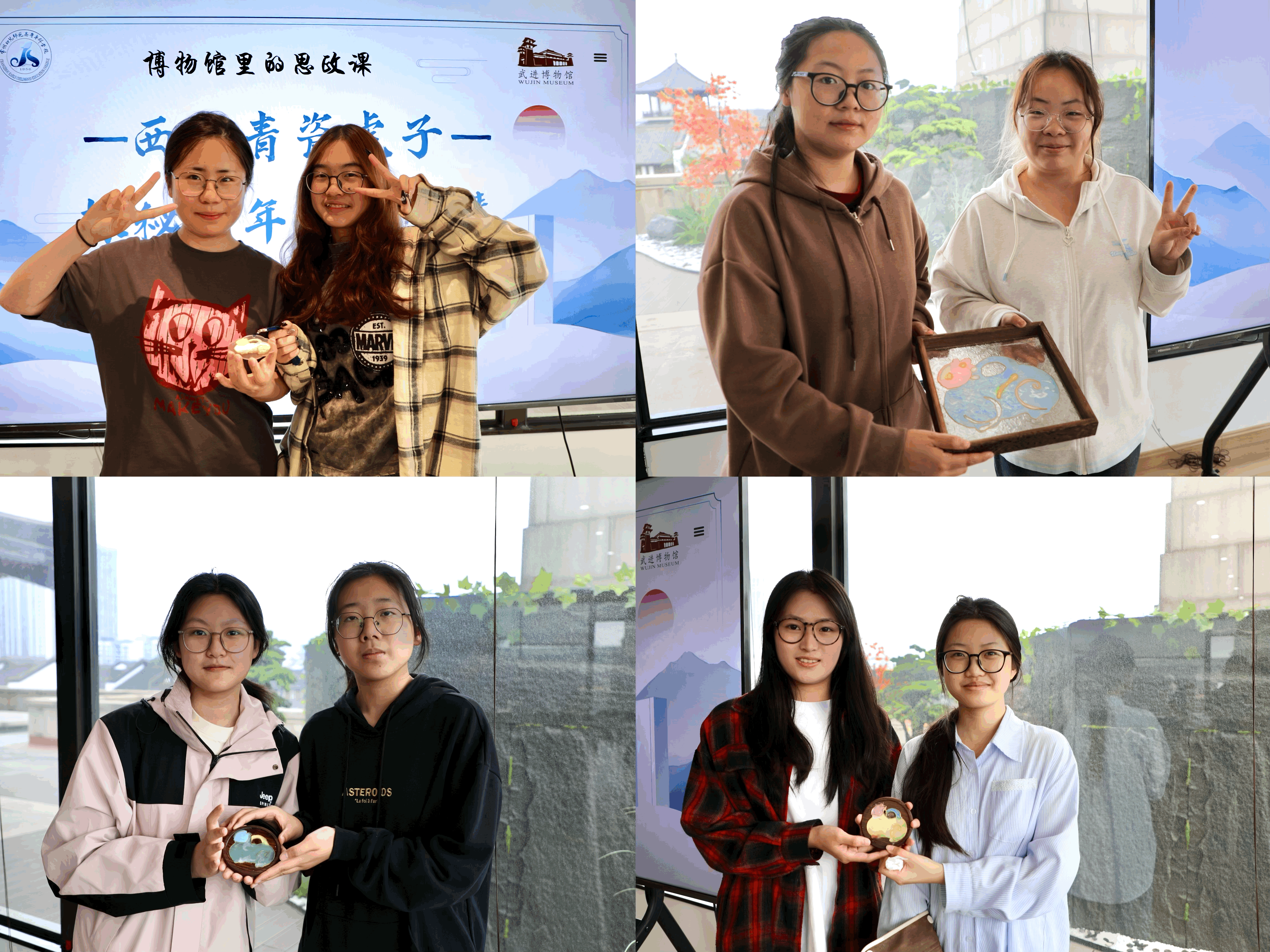 活动当天,现场组织井然有序。在校团委书记鲁峥、第一期青马工程班主任沈江涛老师和韩洋老师的带领下,16名青马工程学员走进武进博物馆,开启“沉浸式”中华优秀传统文化之旅。在文物参观环节,青年学员在武进博物馆专业讲解员和我校青年志愿者的引导下,近距离观赏了馆藏西晋青瓷虎子等重要文物,细致了解了文物背后的历史渊源与工艺价值,切实感受到优秀传统文化的恒久魅力和现实意义。在理论讲解环节,青年志愿者系统梳理了青瓷虎子相关历史知识,强调文物保护在文化传承中的重要作用,并对掐丝珐琅工艺等中华优秀传统技艺进行详细解读,倡导青年学子以实际行动投身传统文化的传承与弘扬。在非遗体验环节,学员们在志愿者指导下,体验掐丝珐琅制作流程,在合作学习中逐步掌握要领,创作出风格各异、富有创意的青瓷虎子主题非遗作品。大家纷纷表示,在亲自动手操作的过程中,自己深刻感受到非遗工艺的独特魅力与文化价值,进一步增强了民族自豪感和文化自信心。