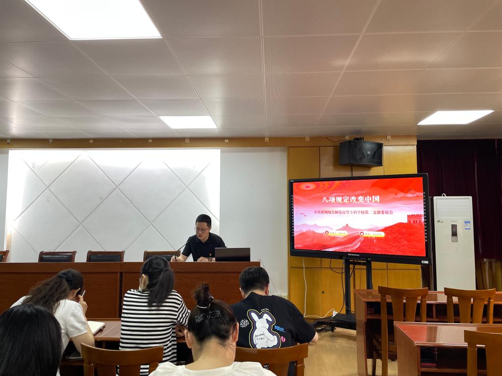 5月28日,我校第二党支部召开党员大会,支部副书记殷荣荣同志主持,全体党员参加。会议以深入贯彻中央八项规定精神学习教育为核心内容,主要围绕梳理阶段学习成果、学习警示案例、领学专题党课、专题自主学习四项议程展开。