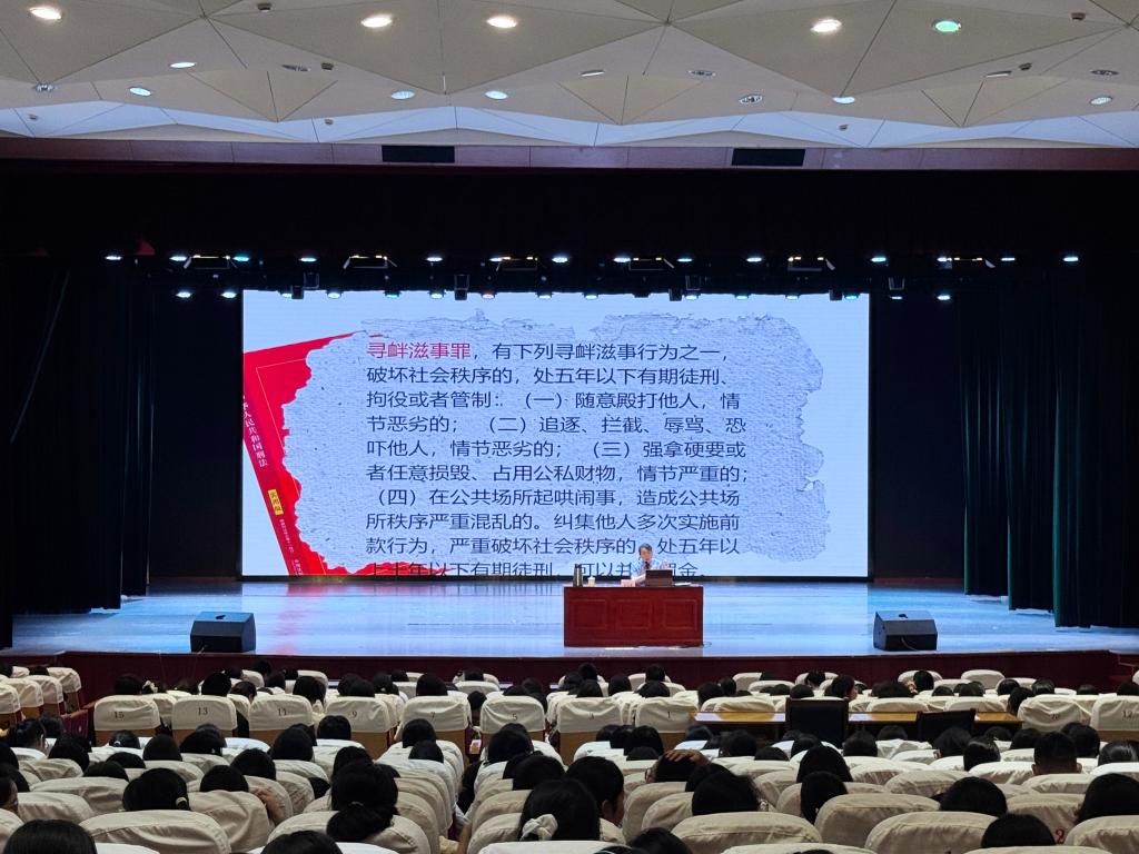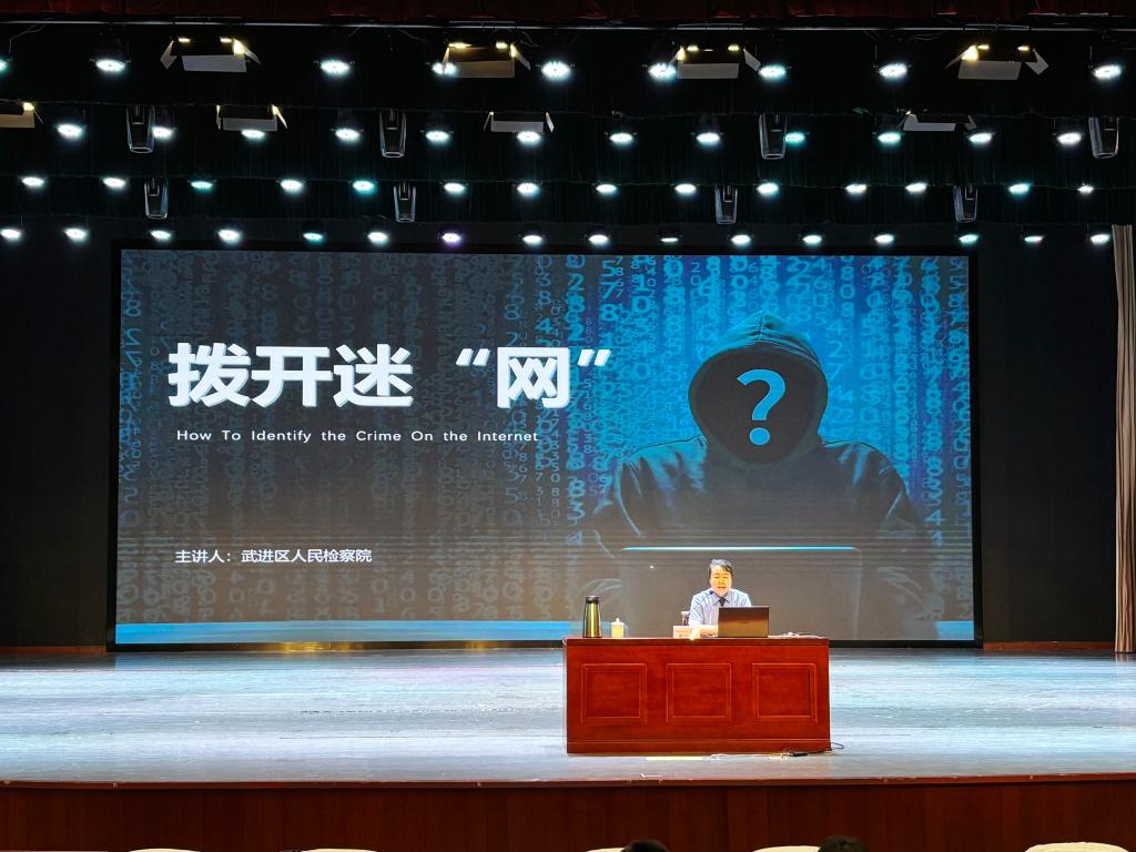 为深化校园法治建设,提高学生法治素养与网络风险防范能力,6月9日下午,我校特邀武进区人民检察院未成年人检察部检察官郭辰晨,在演播厅开展《拨开迷“网”》主题法治讲座。五年制23、24级全体师生参加学习。