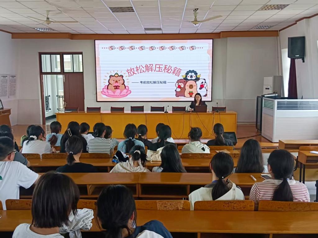 培训内容丰富,涵盖“理论讲解”与“实践体验”两大模块。理论环节,申宏浩老师通过剖析备考焦虑典型案例,深度解读其心理成因与负面影响,并重点强调了心理委员在朋辈支持系统中的核心作用。实践环节,她精心设计三重解压体验:通过“舒心解压操”带领学生舒展身体,卸下身心疲惫;通过“压力传递”游戏,巧妙化解学生紧张情绪;通过“烦恼纸飞机”活动,引导学生将考试压力转为文字、折入纸翼、放飞释怀。三个环节层层递进,形成从身体放松到心理调适的完整疗愈闭环。