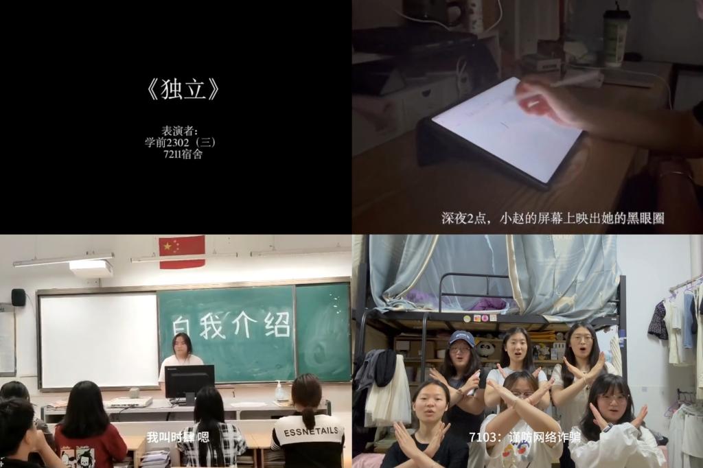 校园文化活动是青春盛会,更是育人实践。学子们在“共比一场赛”中点燃激情:绿茵场上,“冲刺接力穿针赛”考验速度与专注,“两人三足”“双龙戏珠”凝聚团队默契,“我眼中的舍友”画笔描绘室友情深。在“共唱一支歌”中奏响青春,将宿舍化为舞台,以激昂红歌抒发报国壮志,以温情旋律诉说同窗厚谊。在“共拍一部剧”中绽放梦想,心理剧展演直面现实,《抢票历险记》趣味反诈,《独立》探讨成长规划,真挚表演传递健康理念,展现思想启迪与育人温度。