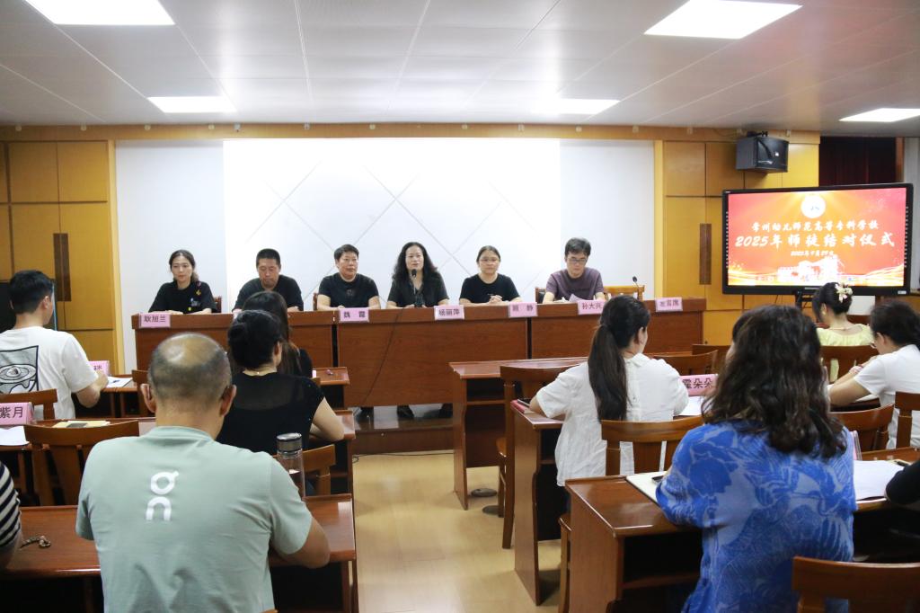 首先,耿旭兰老师宣读了2024-2025学年师徒结对中优秀师徒名单,与会领导向获奖教师颁发荣誉证书,余嫚、陈筱两位老师分别代表优秀师傅和优秀徒弟作了经验分享。随后,顾静处长宣读了2025-2026学年师徒结对名单,钱瑜和夏琰老师分别代表新师徒作了交流发言。接着,杨丽萍副校长代表校行政对新师徒提出了希望和要求,鼓励他们通过此次结对活动,在全校范围内形成互学共进、敬业奉献的良好氛围,让教育的薪火代代相传,共同谱写我校教育事业发展的新篇章。最后,结对的徒弟和师傅郑重签下了师徒结对协议。