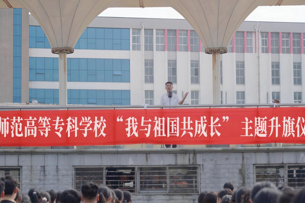 9月29日,我校举行“我与祖国共成长”主题升旗仪式,邀请了常州三杰纪念馆宣传教育科科长甘俊锐进行爱国主义宣讲。全体师生参加仪式活动。