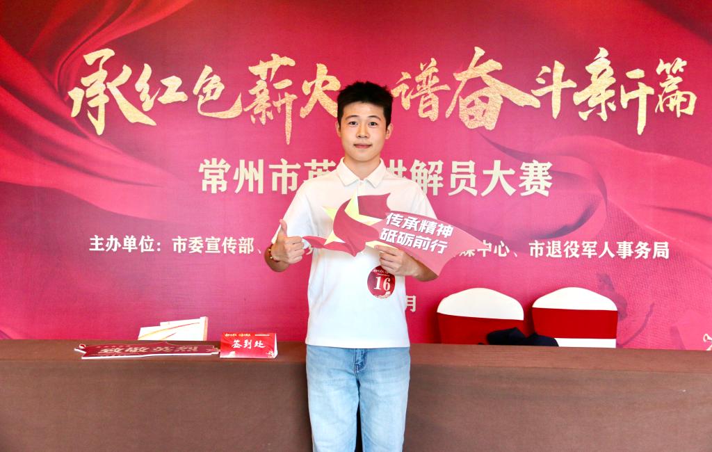 我校王栋梁同学自筹备阶段起便全情投入,校团委联合武进区退役军人事务局、武进革命烈士陵园管理中心的专家老师,为其精心打磨讲解内容。决赛现场,他声情并茂地讲述了常武英烈吴荣富的感人事迹:时而铿锵有力,再现先烈奋勇冲锋的不屈英魂;时而婉转低沉,刻画英雄背后默默坚守的柔肠热血,赢得了现场评委和观众的一致认可。经过激烈角逐,王栋梁同学最终以并列第三的成绩荣获大赛二等奖。