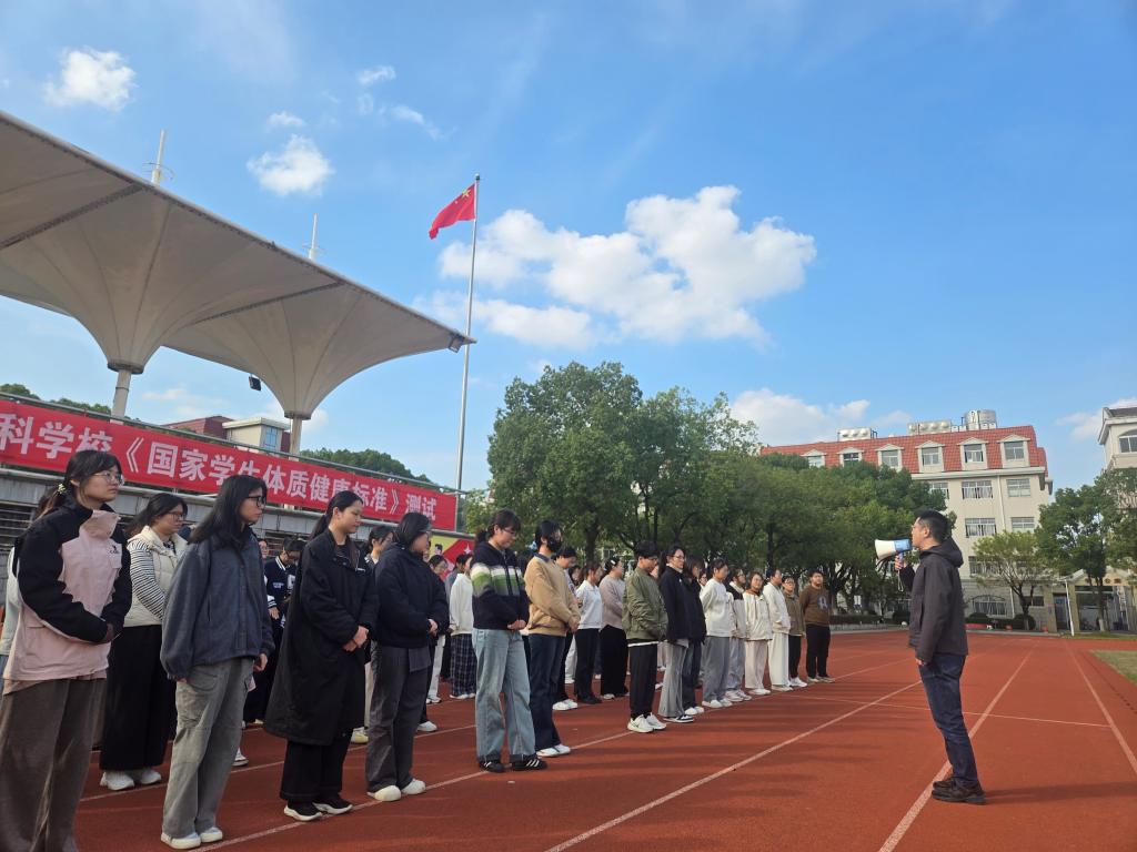 教务处副处长殷荣荣、公共基础部(思政教学部)主任助理王伟参加测试启动仪式,殷副处长叮嘱同学们重视赛前热身、遵守测试规则,防范运动损伤,以认真态度完成各项测试,充分展现青春活力。