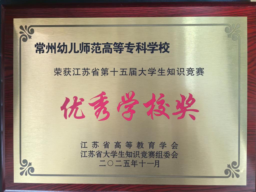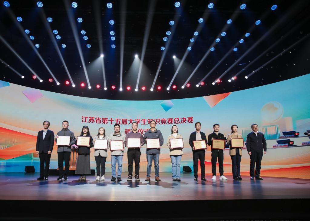 11月15日下午,由江苏省高等教育学会主办的江苏省第十五届大学生知识竞赛颁奖典礼在江苏省教育电视台举行,我校获评2025年江苏省第十五届大学生知识竞赛优秀学校奖。中国高等教育学会副会长葛道凯、江苏省教育厅副厅长杨树兵等领导为获奖学校及个人进行现场颁奖。
